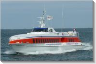 Build in Australia in 2007, the Jacques Cartier allowed "Compagnie Corsaire" to open a new service between Saint-Malo and Jersey. This is a passenger only service. Departures are from the maritime station of la Bourse, "under the ramparts". This vessel can embark nearly 200 passengers and 5 crew members .